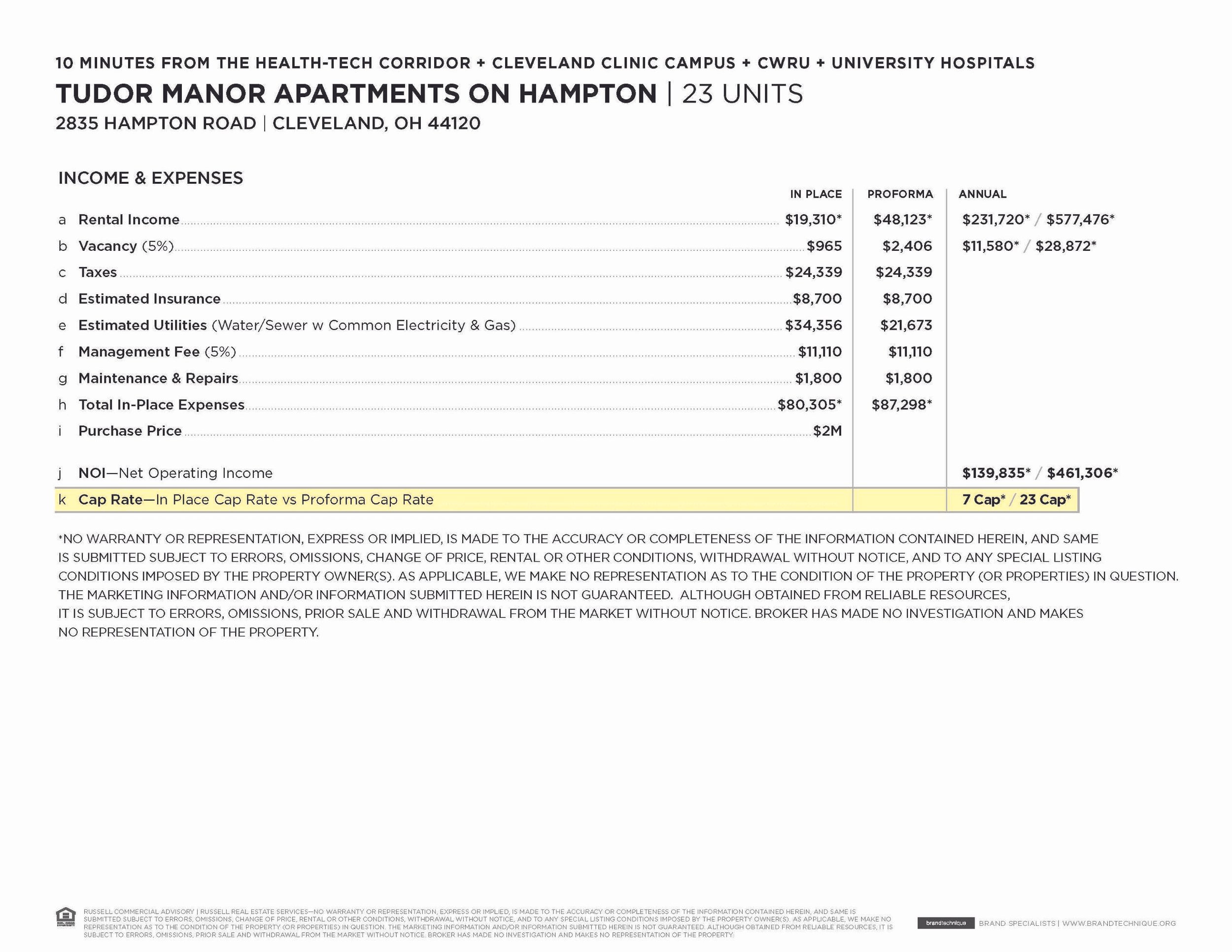 Cap Rate: 7% In-Place | 23% Pro Forma